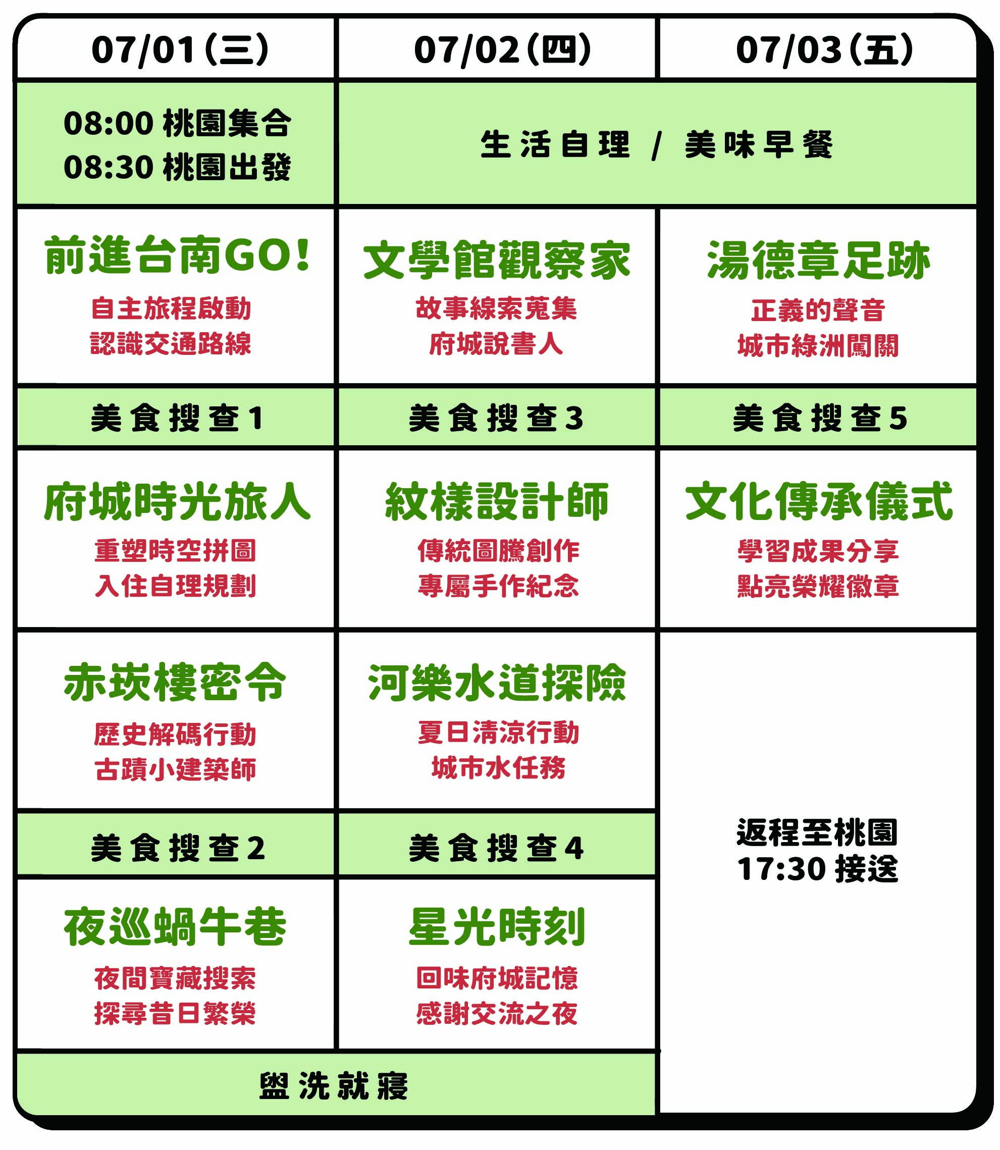 • 課程時間:三天兩夜 07/01(三) – 07/03(五)